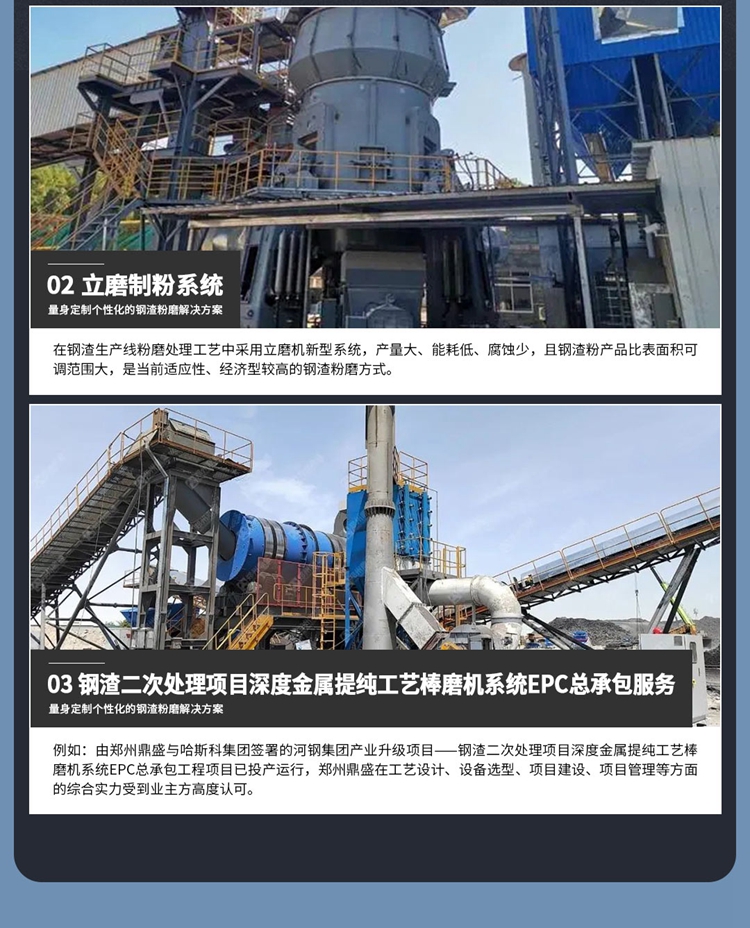 針對預處理后的鋼渣提出了破碎、粉磨、超細磨的一條龍綜合利用方案,實現鋼渣固廢的資源化再利用,進一步減少水泥摻合料的碳排放。